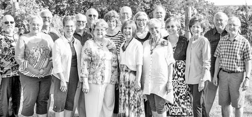 Reunion: The Odebolt-Arthur High School Class of 1966 gathered for a reunion last weekend. Left to right: David Streed of Lafayette, Colo., Sheryl Schroeder Diersen of Odebolt, Ron Boerner of Wamego, Kan., Jean Lippincott Boerner of Ankeny, Ed Jacobsen of Ida Grove, Theron Smith of Ames, Marianne Kitterman Fuchsen of Spencer, Joan Schmidt Swensen of Kiron, Curtis Johnson of Omaha, Neb., Jo Ellen Ferguson Hall of Missouri Valley, Darla Siebrecht of Clive, Sara Jane Christiansen Taylor of Cedar Rapids, Marc Sommerfield of LeMars, Barbara Siebrecht Jensen of Onawa, Jayne Lashier Harter of Ida Grove, Dick McGonigle of Houston, Texas, and Alan Blake of Spirit Lake. (Courier photo by Trey Rohlk)